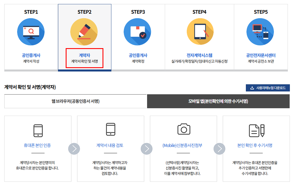 | STEP 2 | 계약자(임차인·임대인) | 계약 내용 확인 및 서명 |