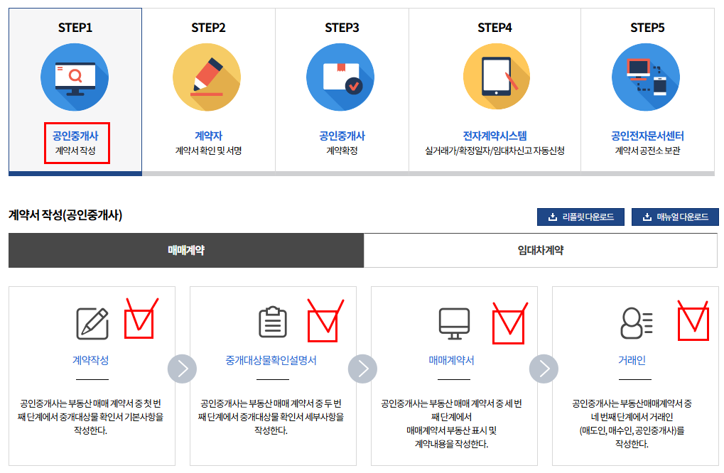 | STEP 1 | 공인중개사 | 계약서 작성 |