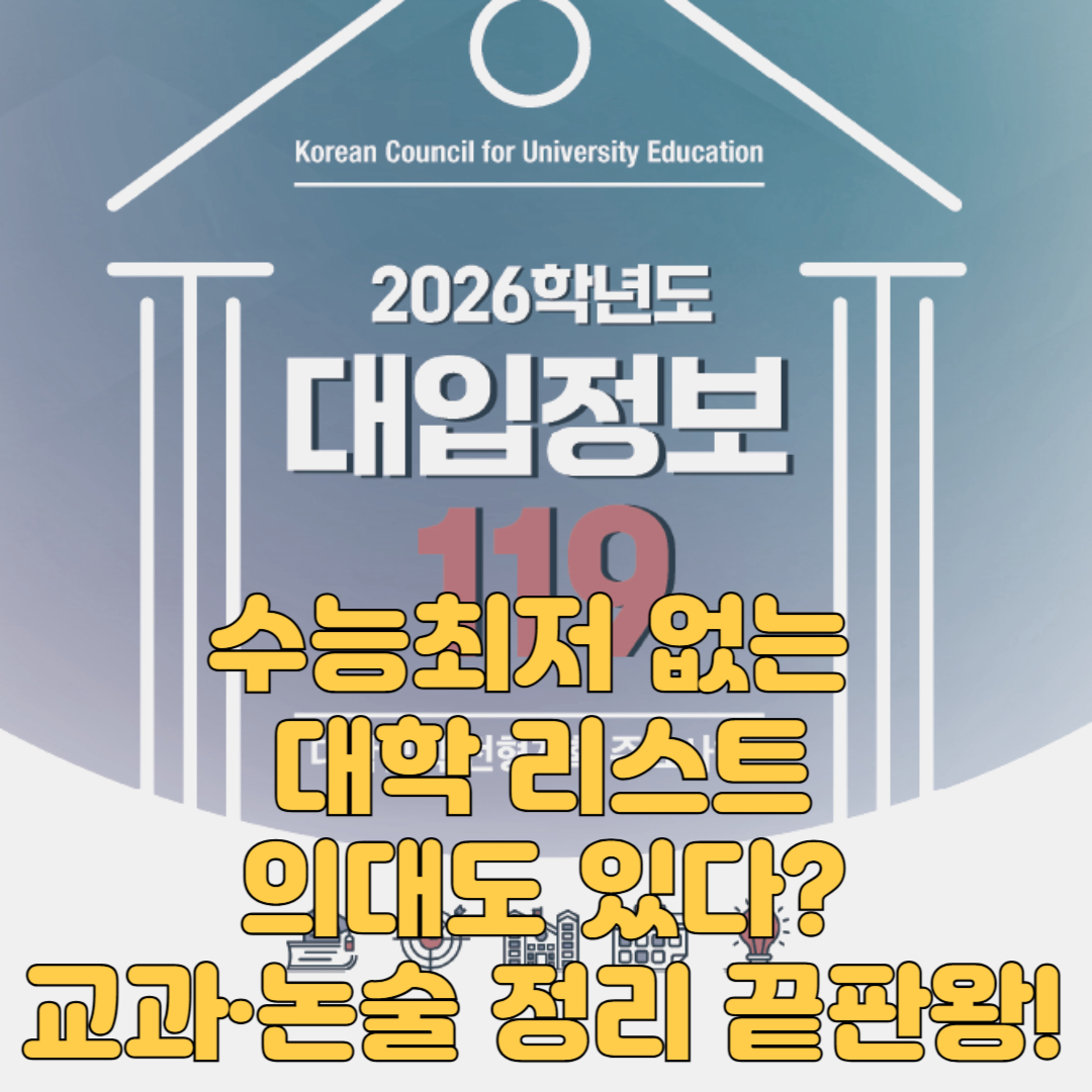 👉 **‘수능최저없는대학’, ‘수능최저없는교과전형’, ‘수능최저없는의대’**를 중심으로 지원 전략을 세워보세요!