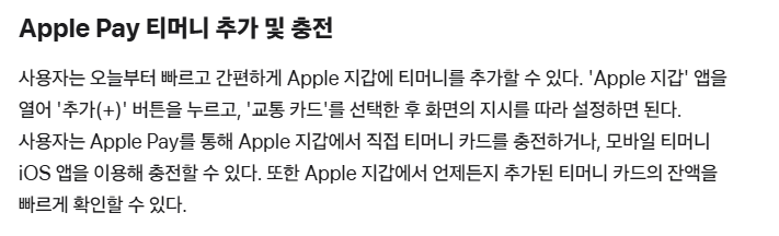 애플페이 티머니 제한 사항 & 아쉬운 점