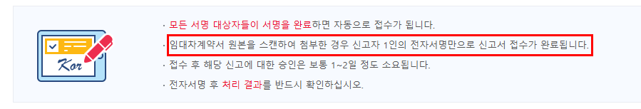 임다차계약서 원본을 첨부한 경우 신고자 1인의 전자서명만으로 신고서 접수가 완료됩니다